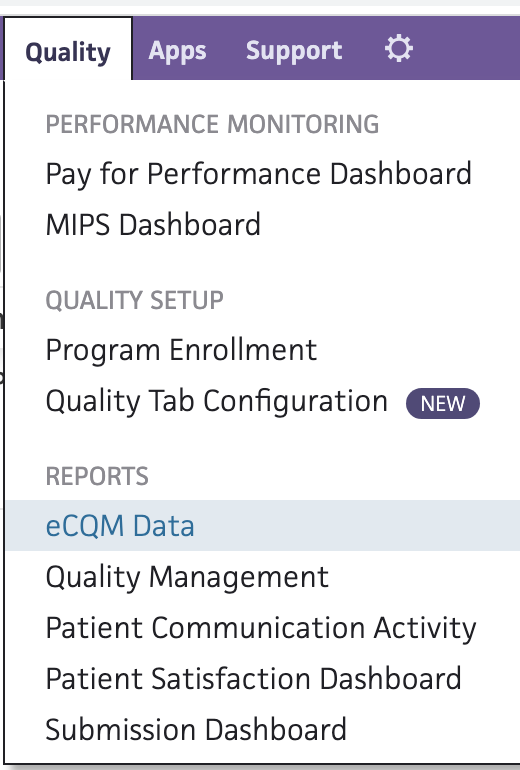 Go to "Quality" in the purple bar at the top and select "eCQM Data."