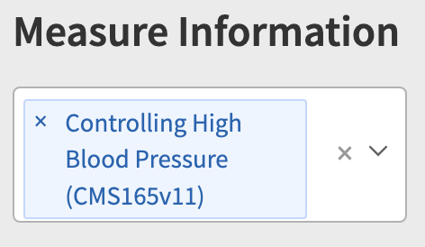 To add a quality measure, use the down arrow next to the "x" icon. Please note: You can extract the QRDA-1 file for only one quality measure at a time. Attempting to include multiple quality measures in a single extraction is not allowed.