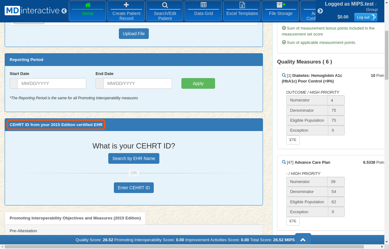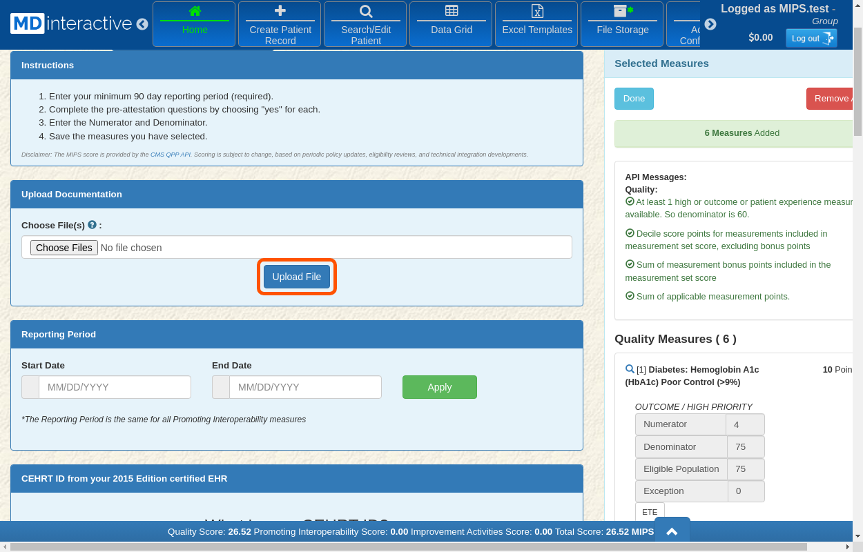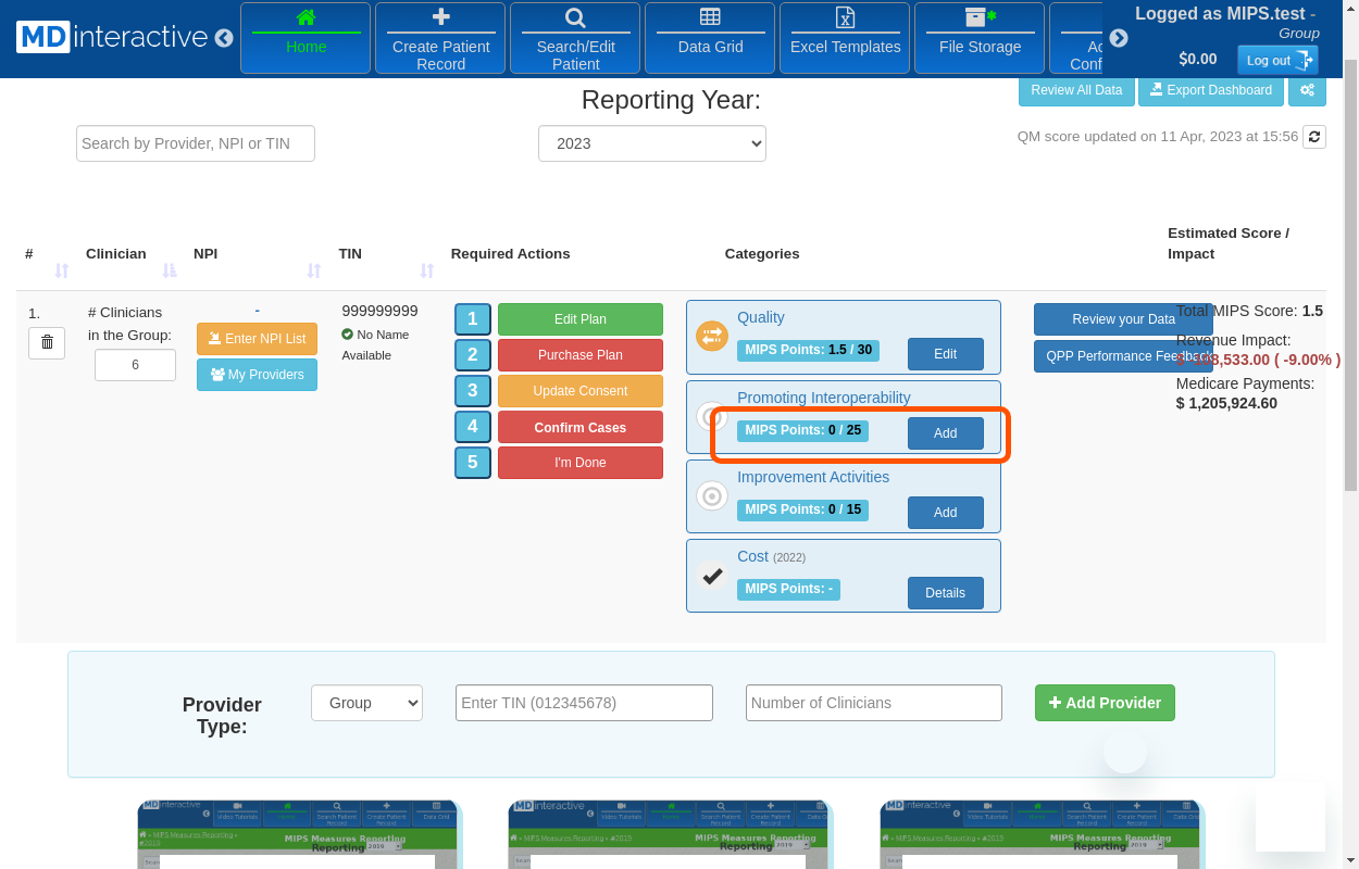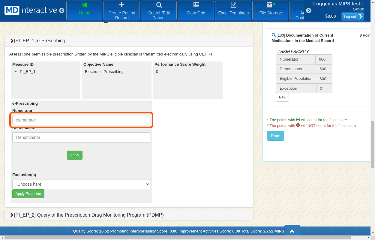 After the PI data entry is successfully completed, you will see a score next to MIPS Points.