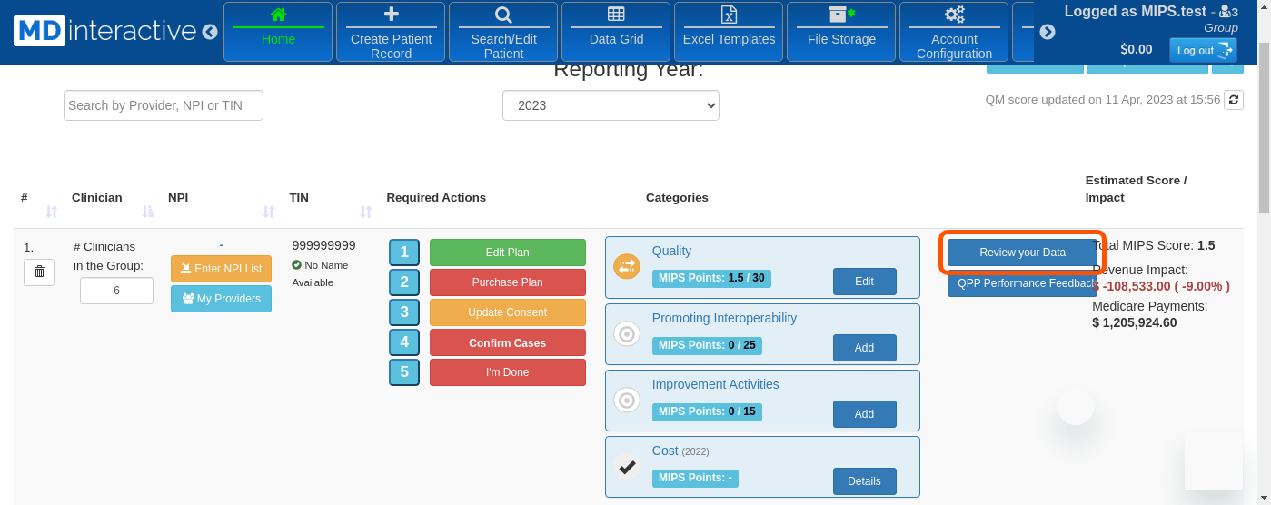 To view all MIPS data entered, uploaded and imported, click on Review your Data.