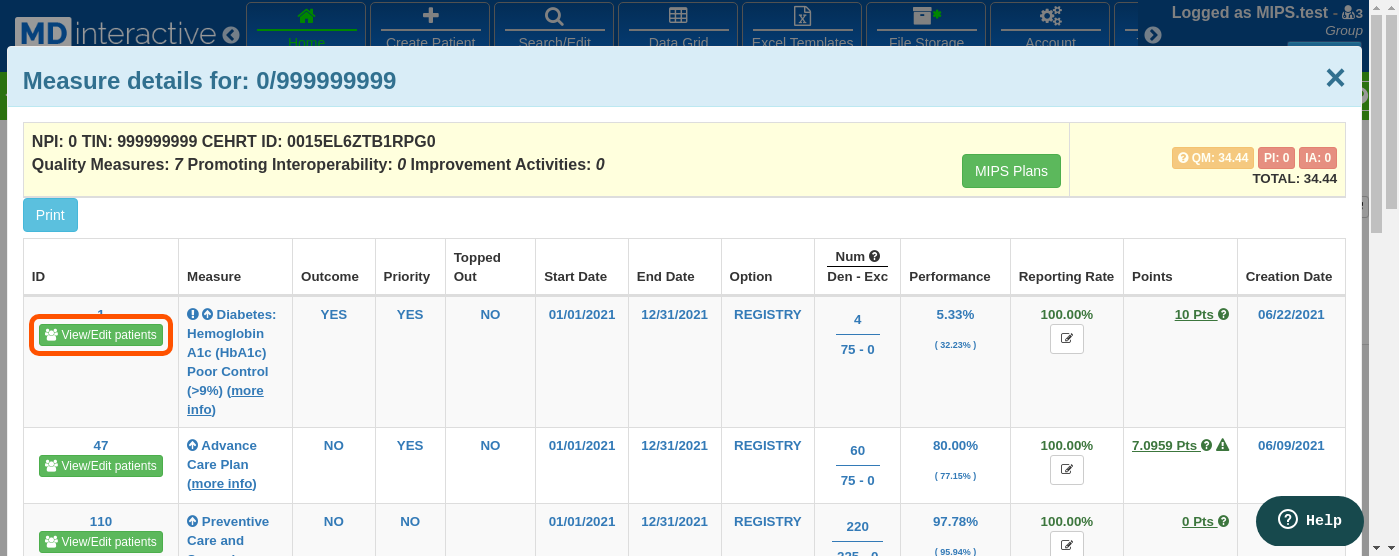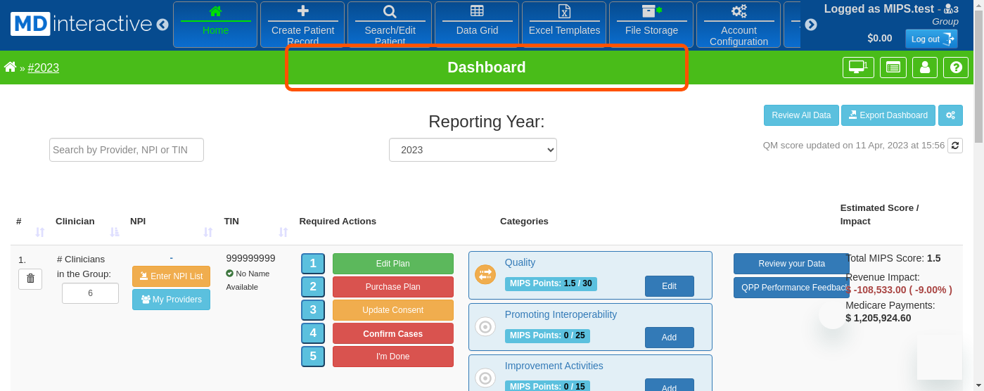 To view the details of your MIPS data, begin by logging into your MDinteractive MIPS Account and visiting your Dashboard.