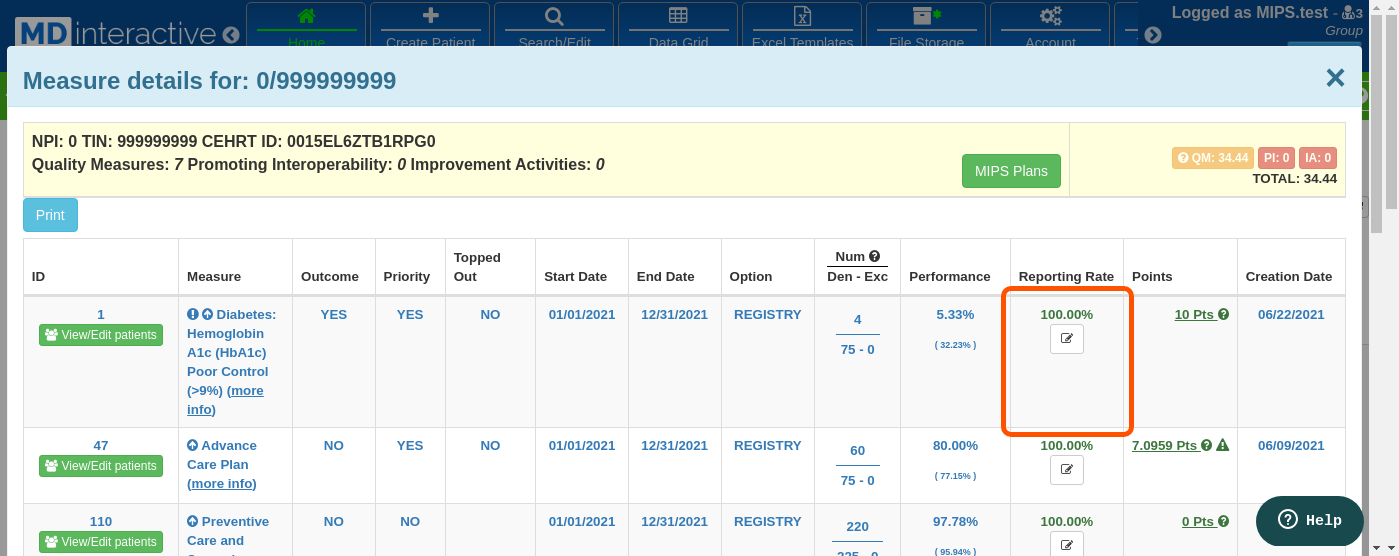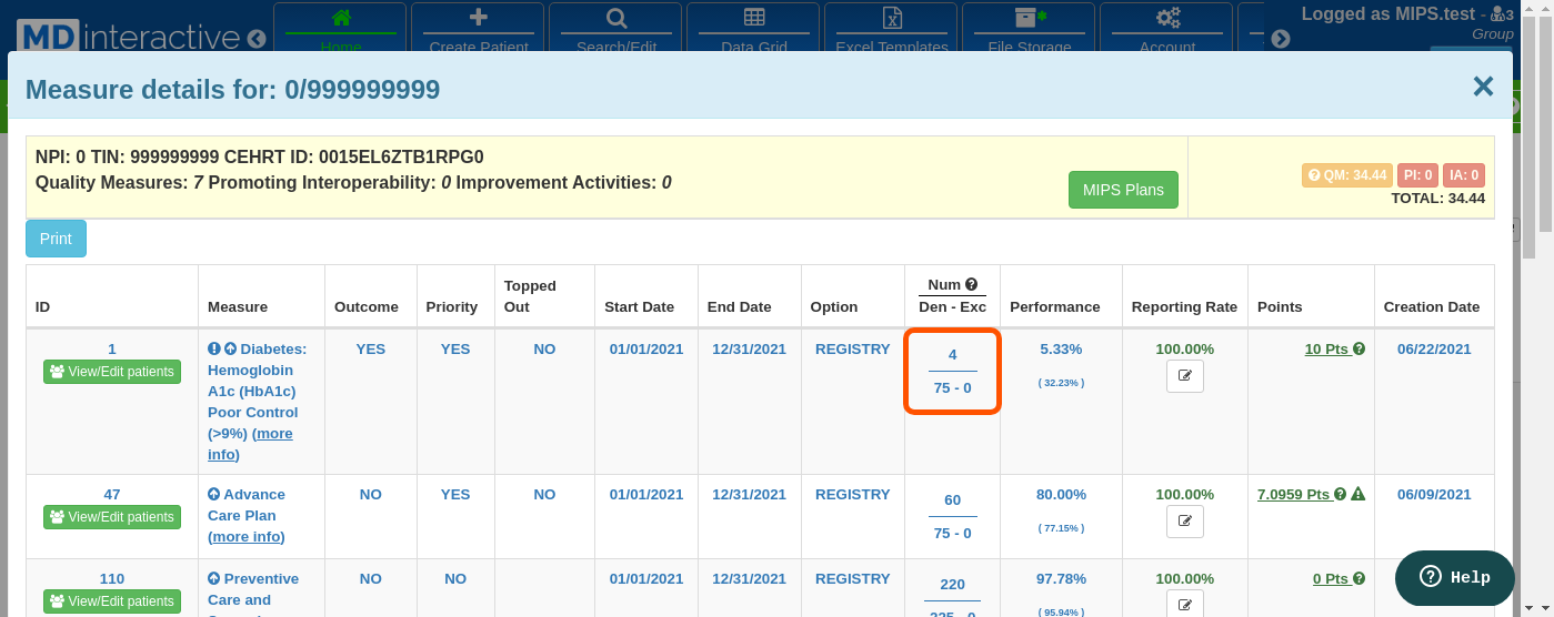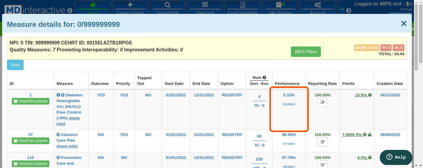 Points/Scores are preliminary, and provided to give you a general idea of how you are performing Y-T-D. CMS will provide the final scores for each measure post submission.