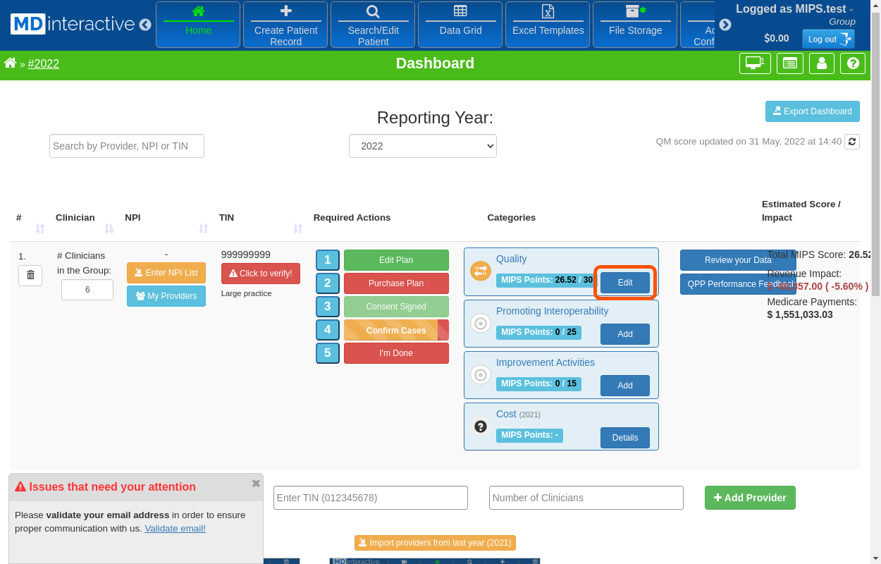 To begin Quality Data Reporting, click on "QM: Add/Edit" to enter the Quality Reporting Module.