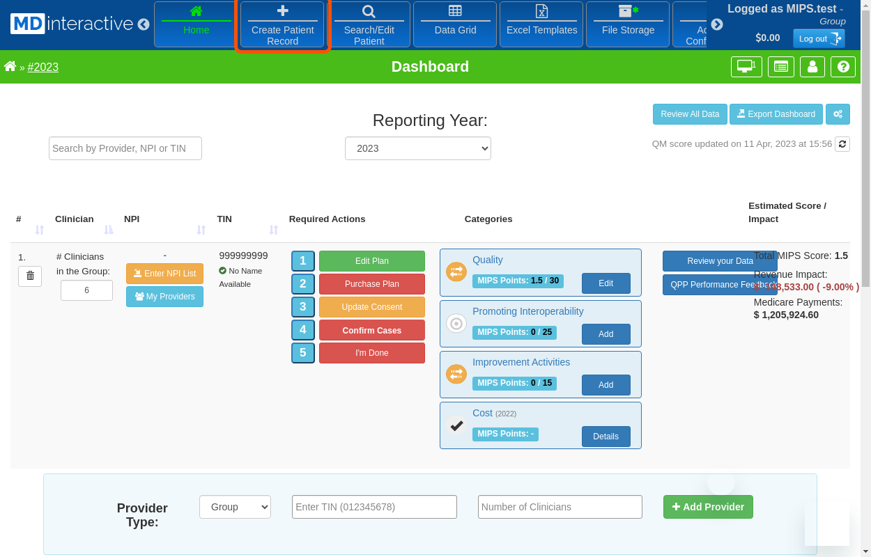 Note: You must first complete your MIPS Plans, located in the middle of your dashboard. Red: Add Plans Green: Edit Plans