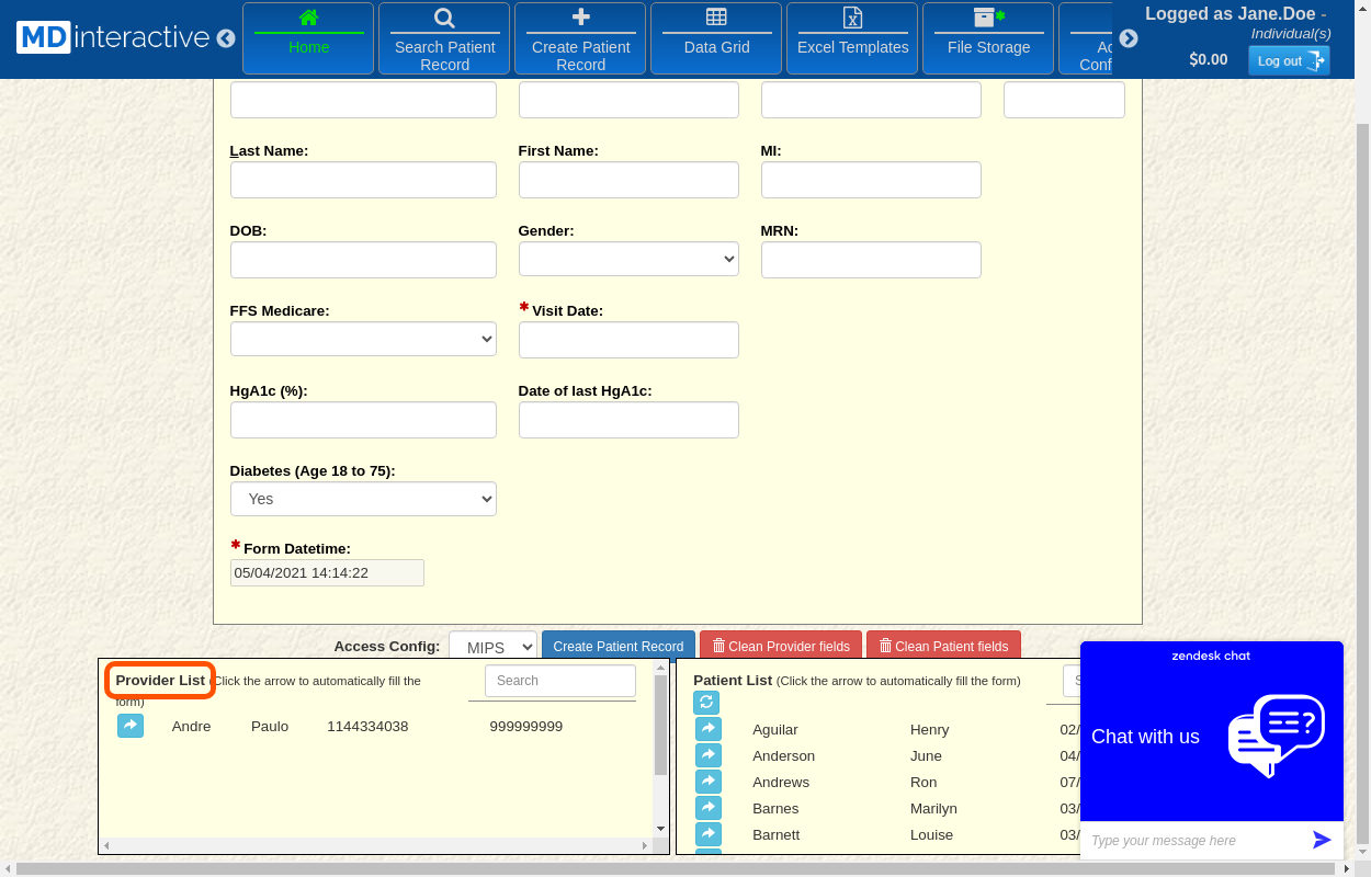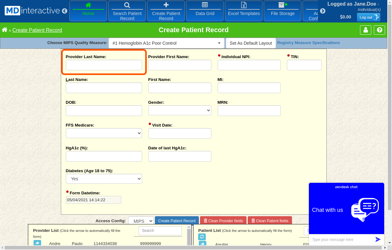 To quickly enter certain name (and NPI/TIN) fields, click on the provider name and/or patient name to autofill the demographic data for the measure.