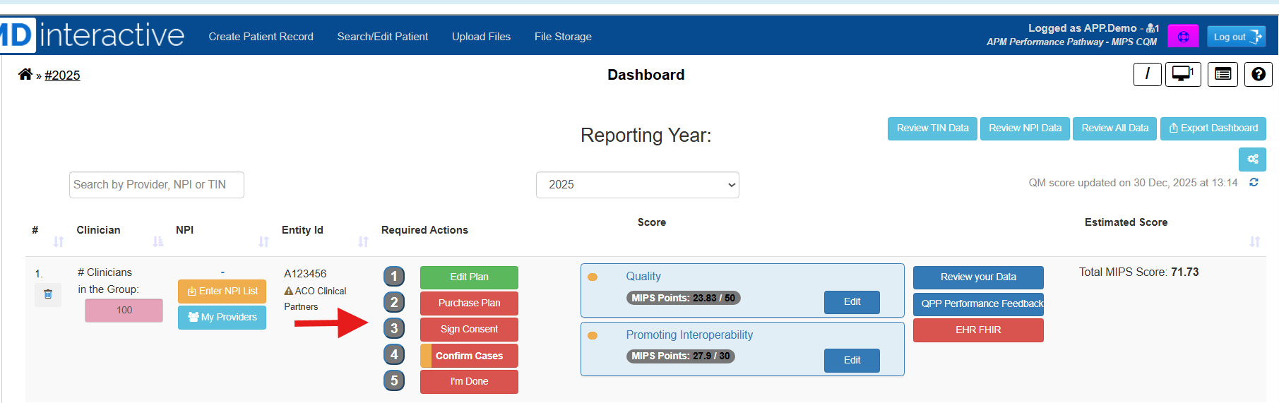 Log in to your MDinteractive account. From the dashboard, click the red “Sign Consent” button.
