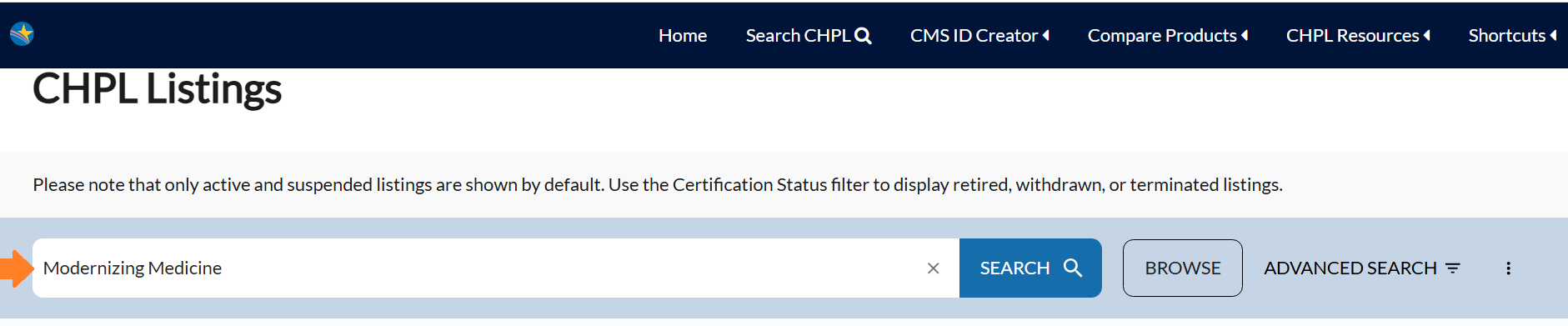 1. Go to the Certified Health IT Product List (CHPL) website: