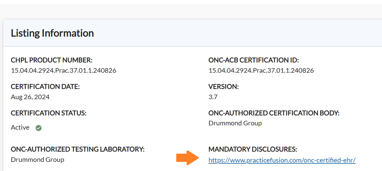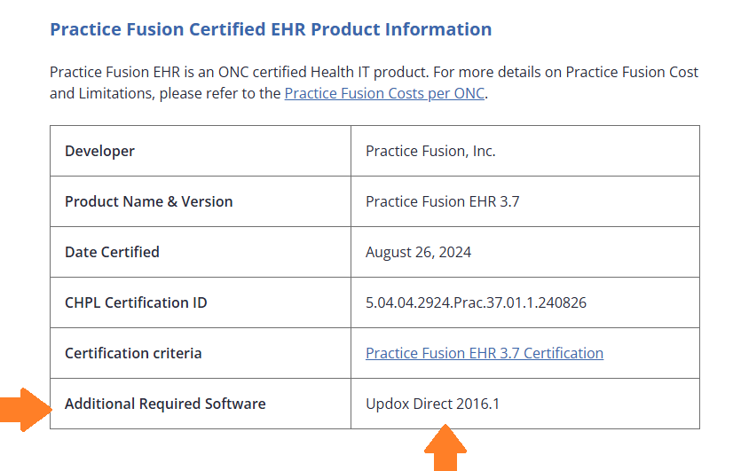 ⚠️ Important: You must also be actively using this additional software for your product to be considered fully certified and for your CEHRT ID to be valid.